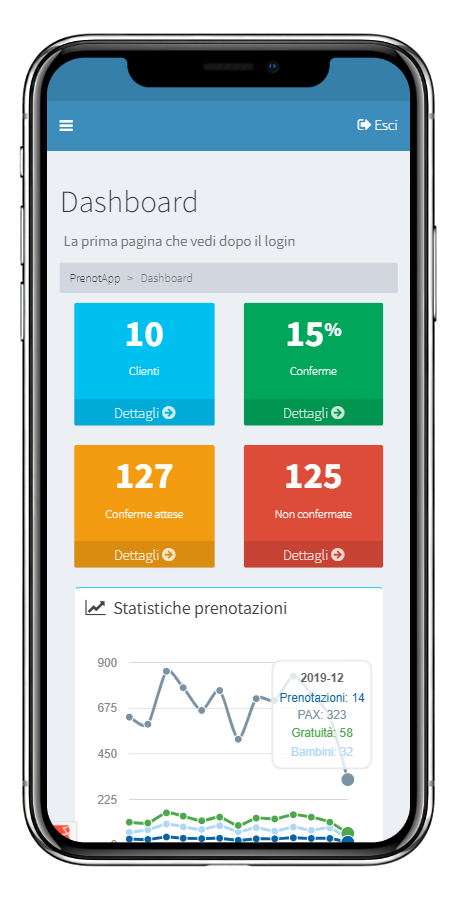 Telefono, Tablet o postazione PC in ufficio. Ogni vista si adatta automaticamente al dispositivo in modo da permettere la fruizione di tutte le funzionalità di PrenotApp.